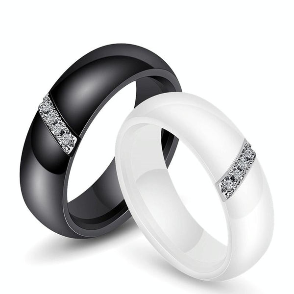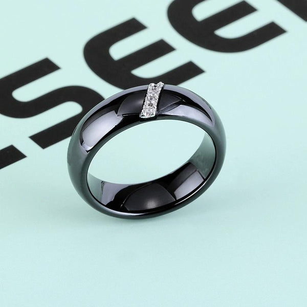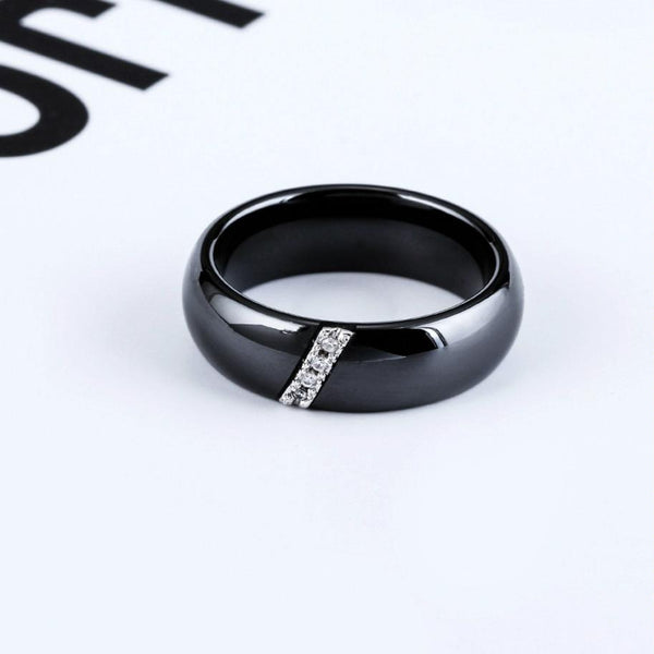 Simple Nano Ceramic Ring Trend Titanium Steel with Zircon Rings, Ring Size:6(Black)