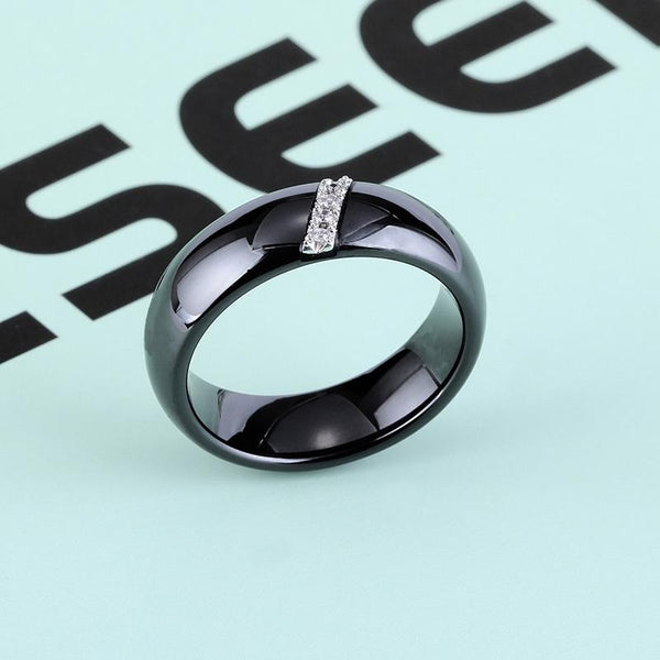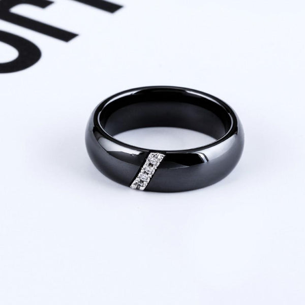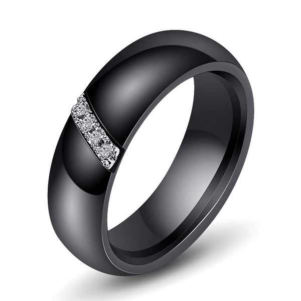Simple Nano Ceramic Ring Trend Titanium Steel with Zircon Rings, Ring Size:7(Black)