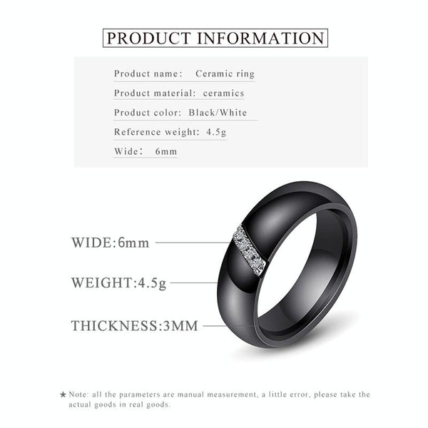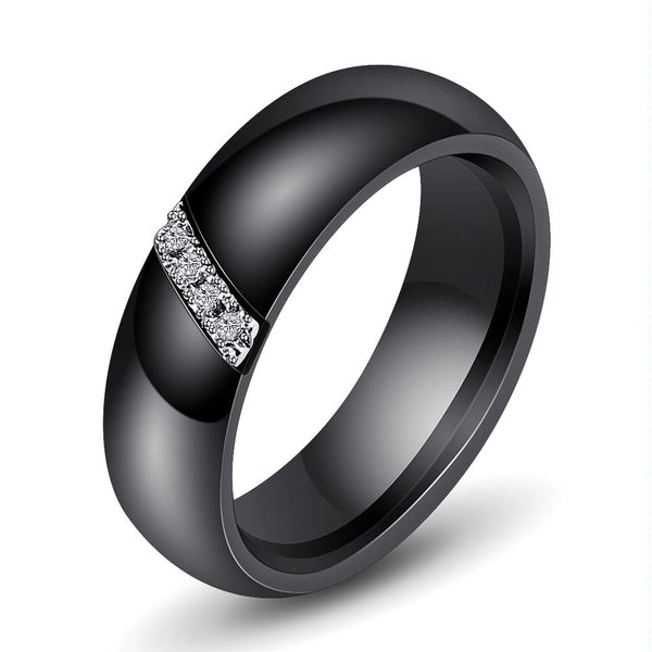 Simple Nano Ceramic Ring Trend Titanium Steel with Zircon Rings, Ring Size:8(Black)