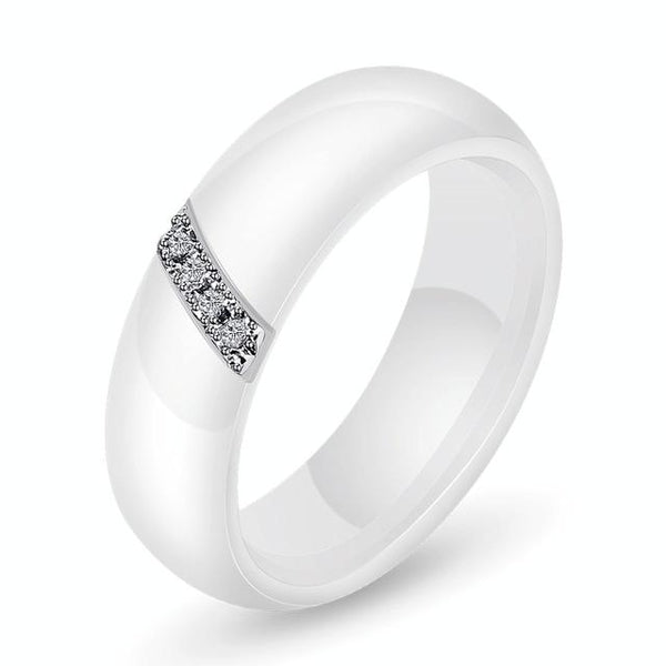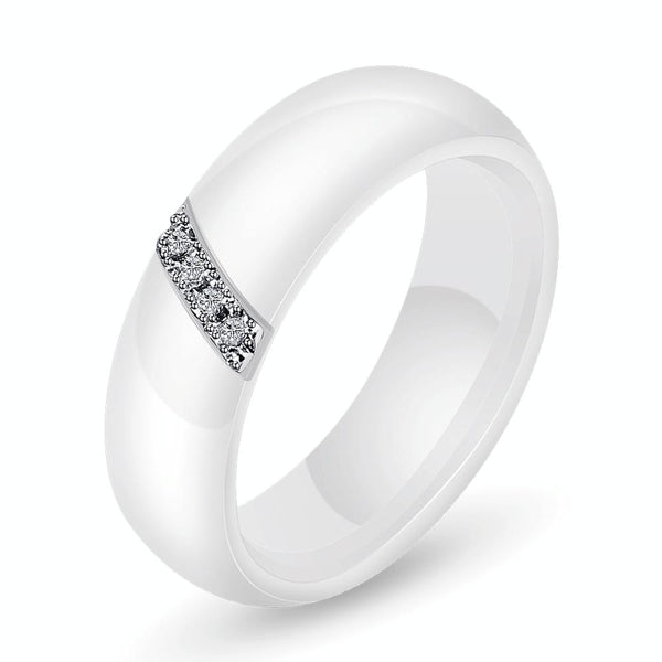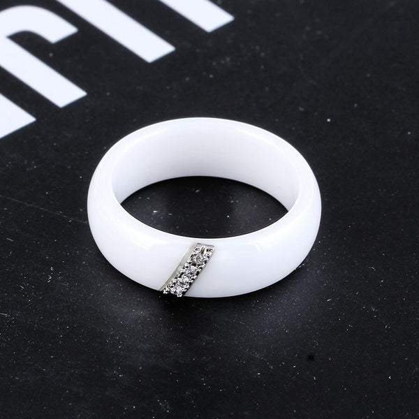 Simple Nano Ceramic Ring Trend Titanium Steel with Zircon Rings, Ring Size:8(White)