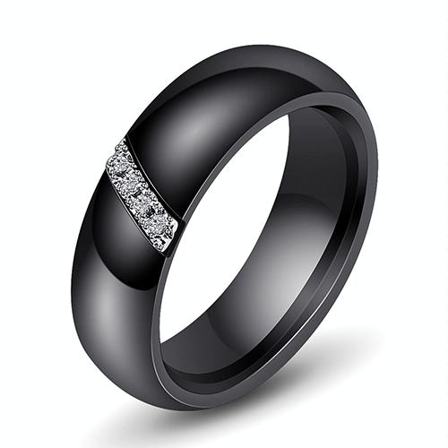 Simple Nano Ceramic Ring Trend Titanium Steel with Zircon Rings, Ring Size:9(Black)