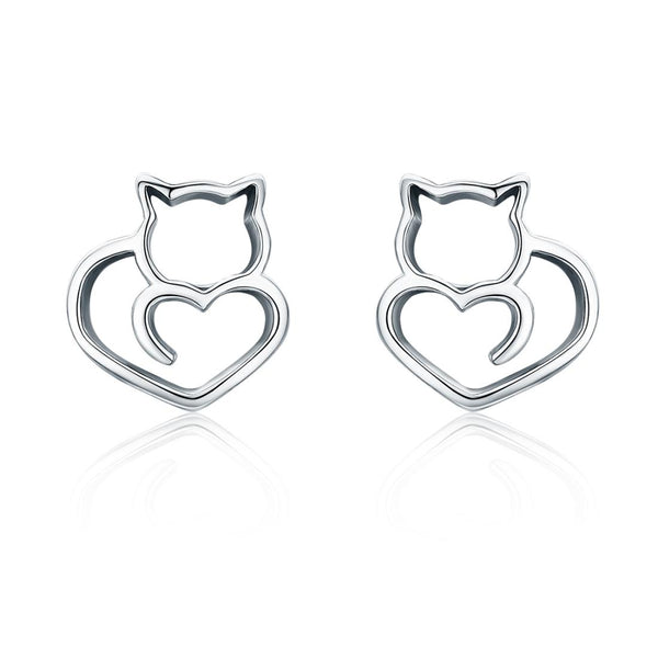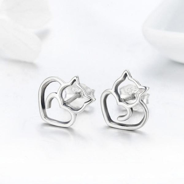 Simple Plain Silver Cat Earrings Sterling Silver Hollow Female Earrings Small Animal Silver Jewelry