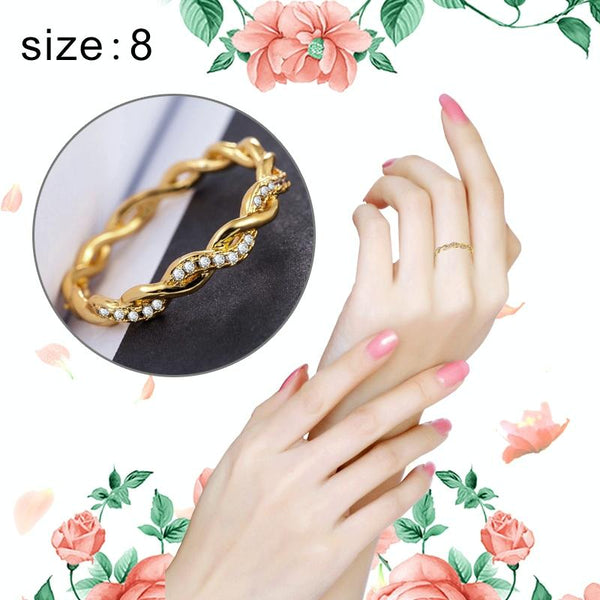 Simple Stylish Ladies Full Rhinestone Twist Modelling Ring(Gold US Size:8)