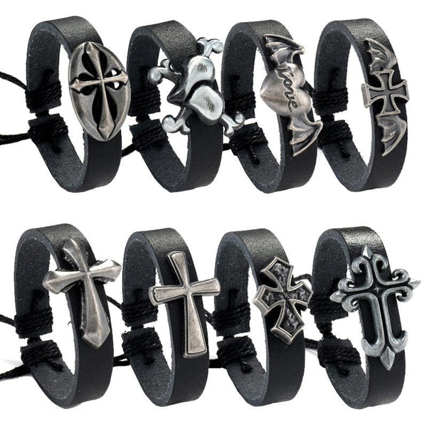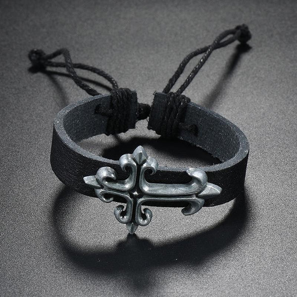 Simple Woven Leather Bracelet Vintage Adjustable Band Wristlet, Style: Cross B Model