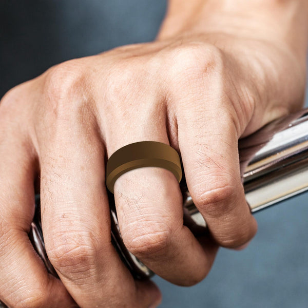 SIR062 8MM Wide Bevel Silicone Ring Sports Ring No.9(Bronze)