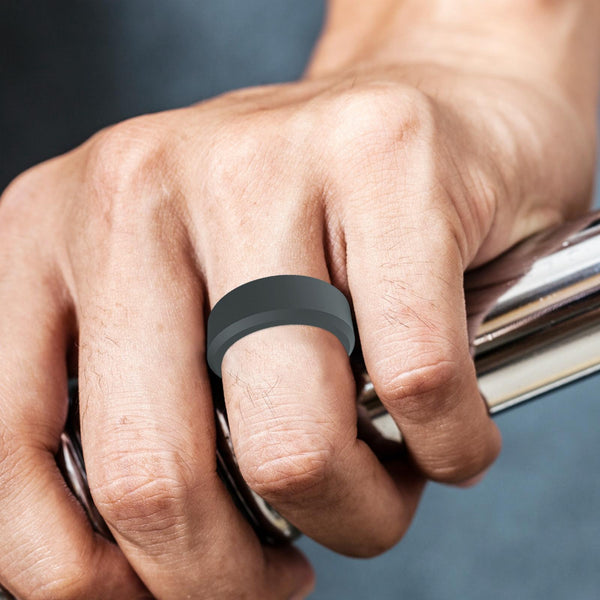 SIR062 8MM Wide Bevel Silicone Ring Sports Ring No.9(Dark Gray)