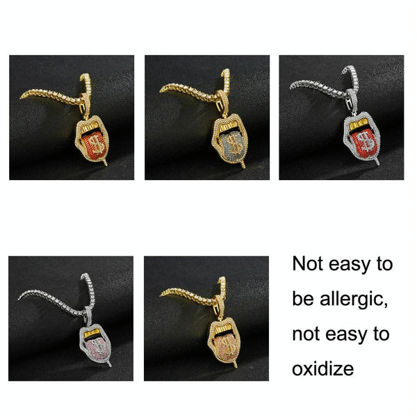 Skull Lips Tongue Pendant Single Row Necklace(Gold + Blue)