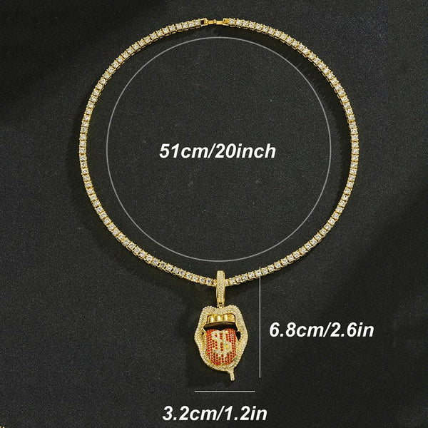 Skull Lips Tongue Pendant Single Row Necklace(Gold + Pink)
