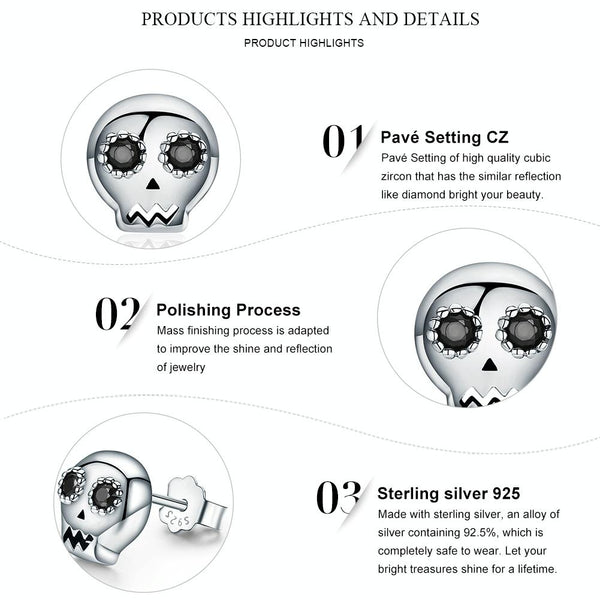 Skull Shape S925 Sterling Silver Stud Earrings Zircon Earrings