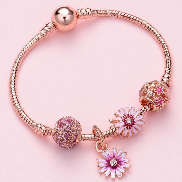SL128 20cm Women Rose Gold Beaded Bracelet