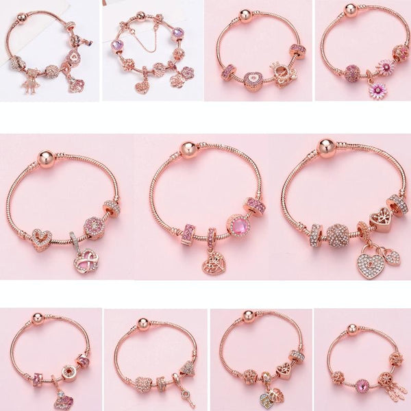 SL133 20cm Women Rose Gold Beaded Bracelet