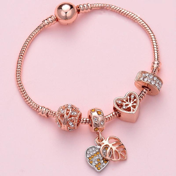 SL135 18cm Women Rose Gold Beaded Bracelet