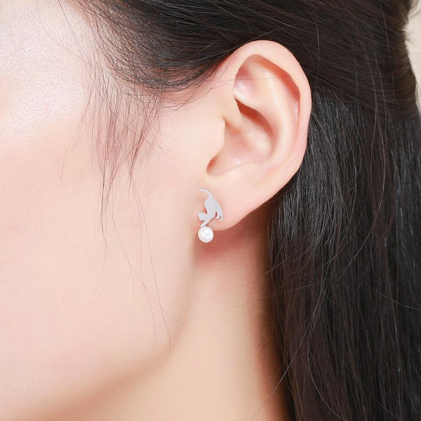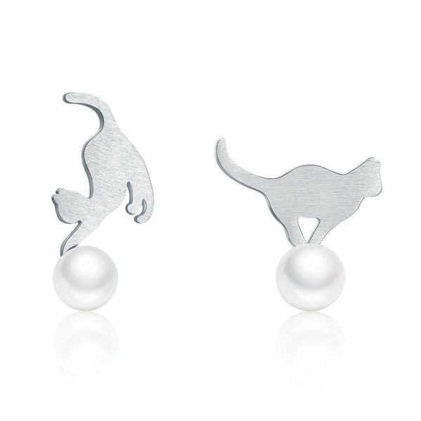 Small Animal Jewelry Sterling Silver Pearl S925 Meow Earrings