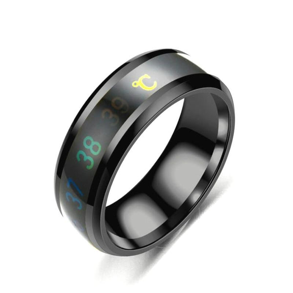 Smart Temperature Ring Stainless Steel Personalized Temperature Display Couple Ring, Size: 7(Black)