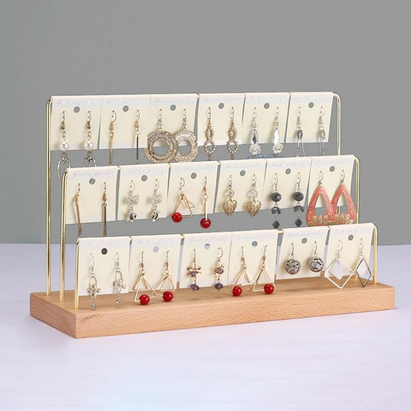 Solid Wood Earrings Storage Rack Display Stand, Style: 3 Layers(Gold)