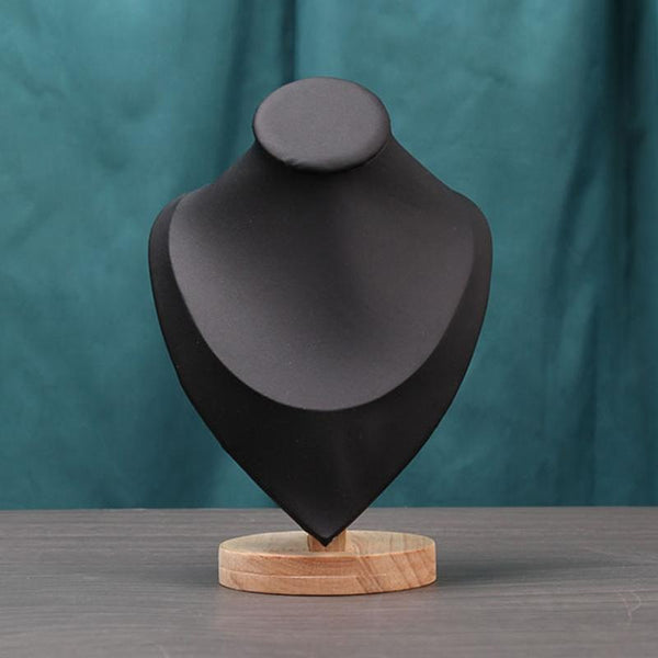 Solid Wood Medium Portrait Necklace Display Stand Heart Shaped Necklace Counter Display Stand(Black)