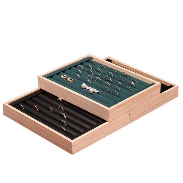 Solid Wooden Velvet Jewelry Display Tray Ring Earring Bracelet Storage And Organization Box, Specification: Medium Black Velvet