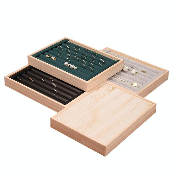 Solid Wooden Velvet Jewelry Display Tray Ring Earring Bracelet Storage And Organization Box, Specification: Medium White Leather