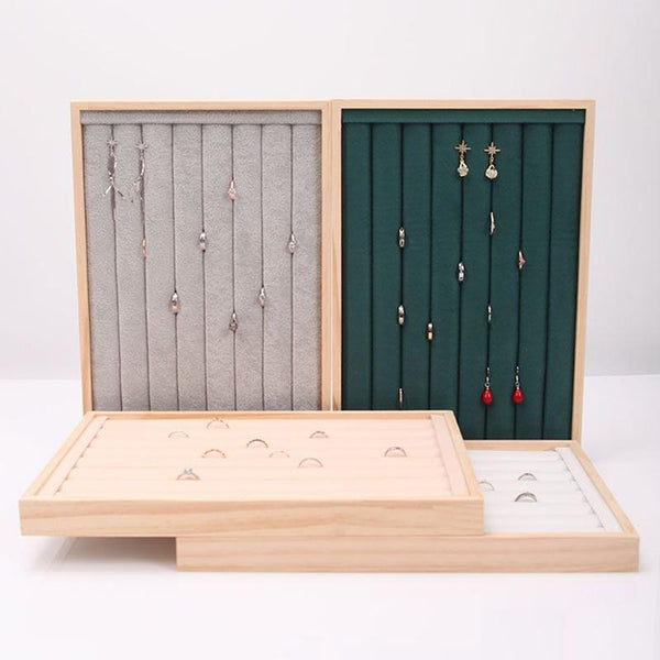 Solid Wooden Velvet Jewelry Display Tray Ring Earring Bracelet Storage And Organization Box, Specification: Small Black Leather
