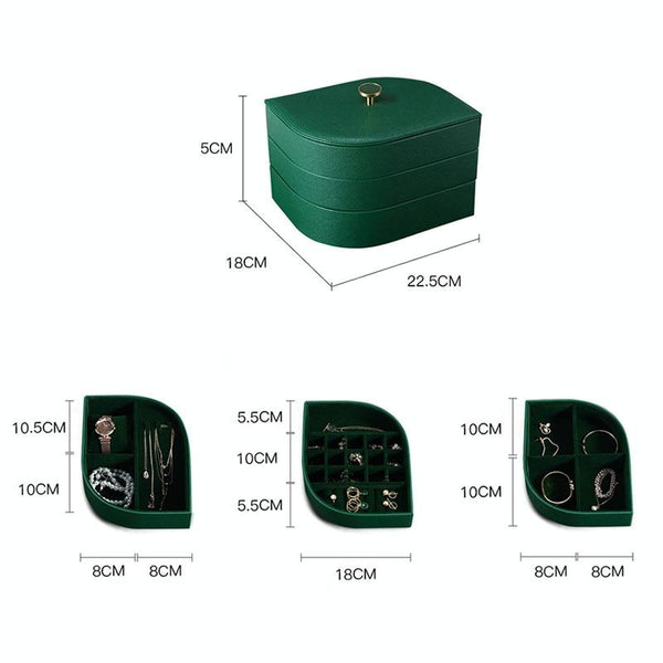 Sp01193 Three-Layer Large-Capacity Leather Jewelry Box(Ink Green)