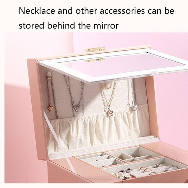 Sp01200 Large Capacity Multi-Layer Jewelry Storage Box With Mirror(Pink)