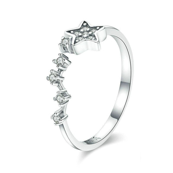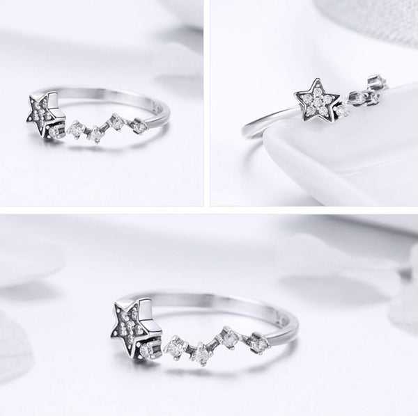 Star Diamond Hollow Ring S925 Sterling Silver Ladies Five-pointed Star Open Ring