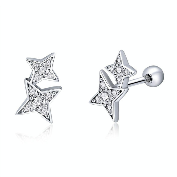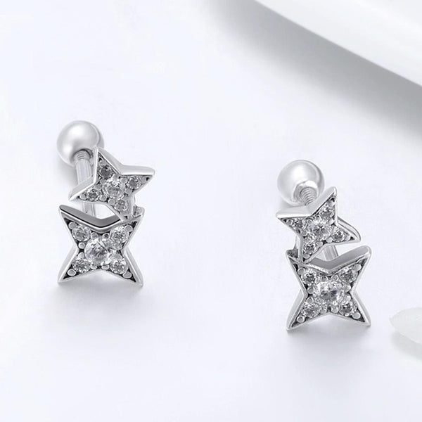 Sterling Silver Bright Star Style Diamond Earrings Female Earrings
