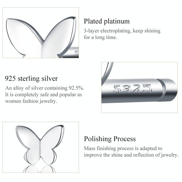 Sterling Silver Butterfly Earrings Fresh Simple and Compact Platinum-plated Girls Earrings