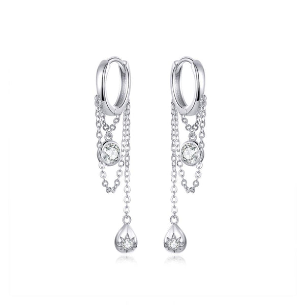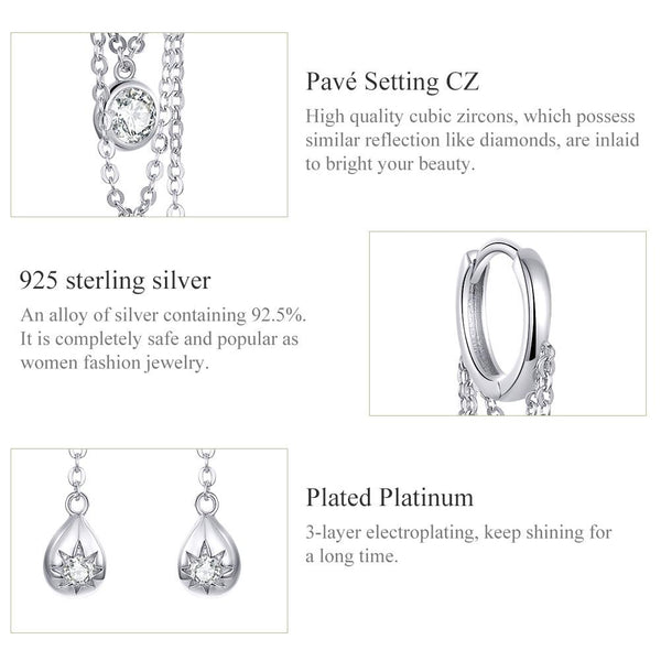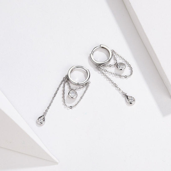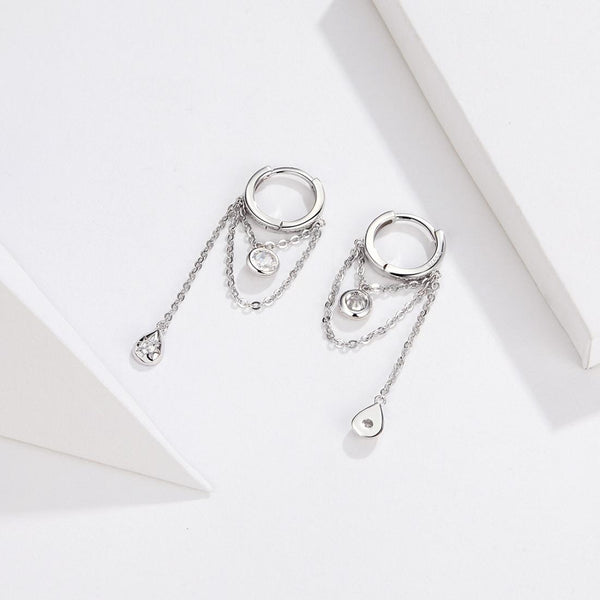 Sterling Silver Earrings Zircon Tassel Long Earrings S925 Girl Earrings jewelry