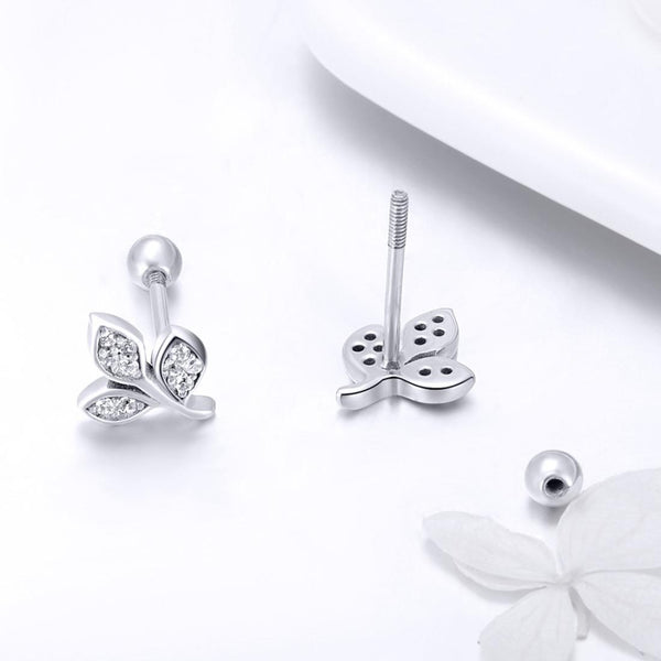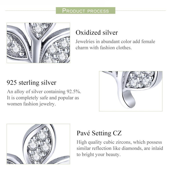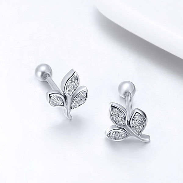 Sterling Silver Leaf Diamond Earrings Female Earrings
