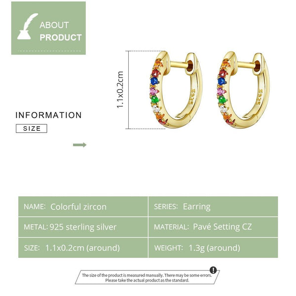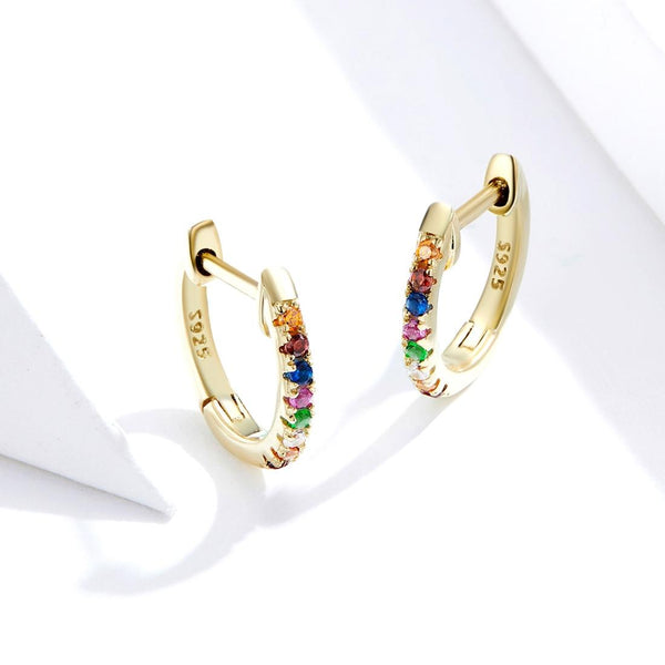 Sterling Silver Rainbow Earrings S925 Zircon Earrings, Color:Gold