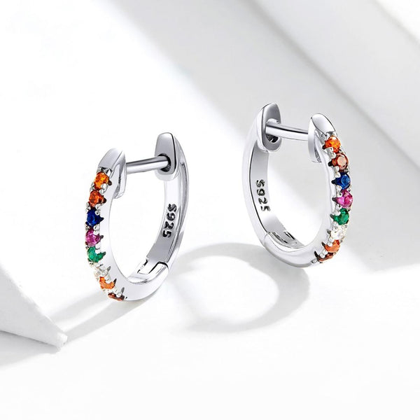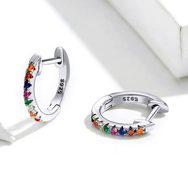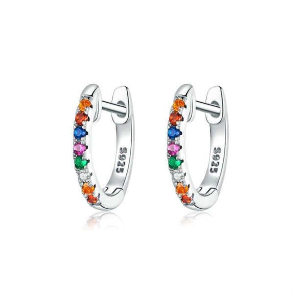 Sterling Silver Rainbow Earrings S925 Zircon Earrings, Color:White
