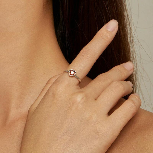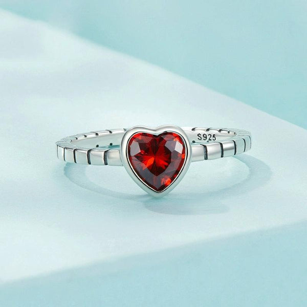 Sterling Silver S925 Burgundy Heart Shaped Retro Women Ring(No.6)