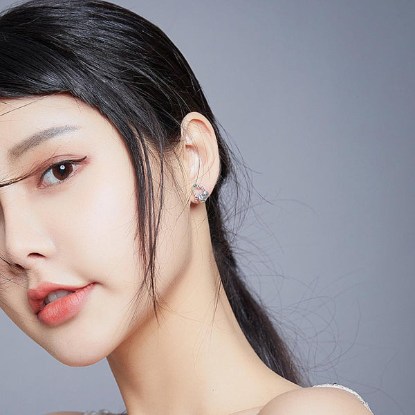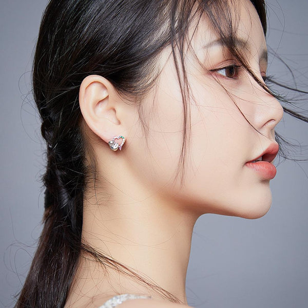 Sterling Silver S925 Heart-shaped Sloth Earrings Personalized Earrings Simple Temperament Female Silver Earrings