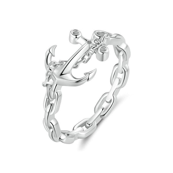 Sterling Silver S925 Platinum Plated Anchor Ring For Women(No.8)