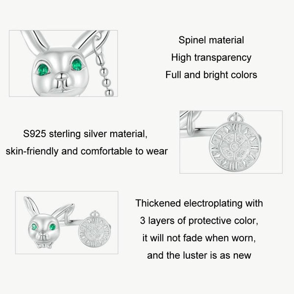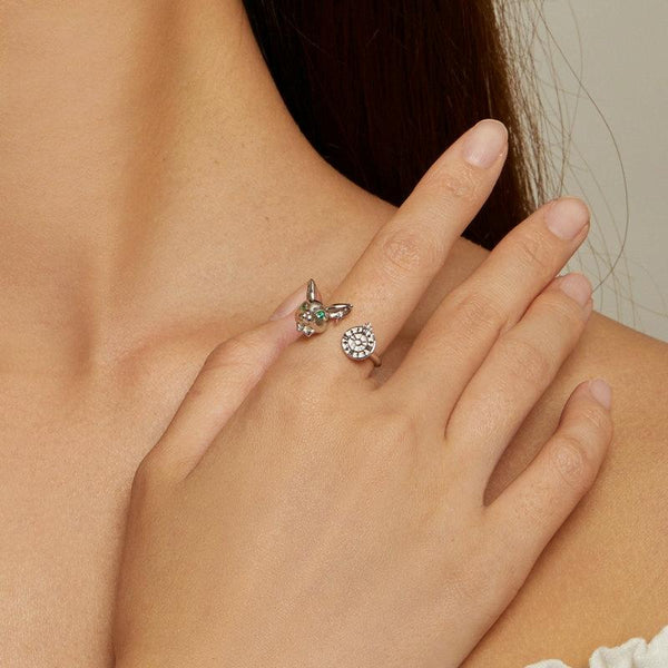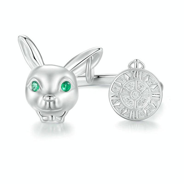 Sterling Silver S925 White Gold Plated Rabbit Clock Opening Adjustable Ring