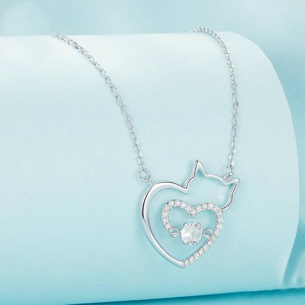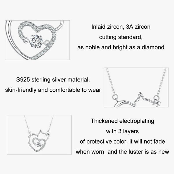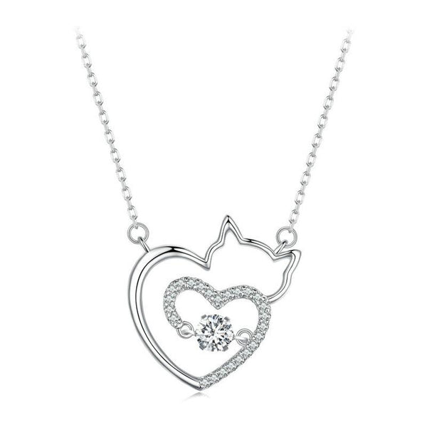 Sterling Silver S925 Zircon Cute Cat Necklace Jewelry