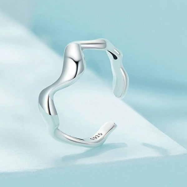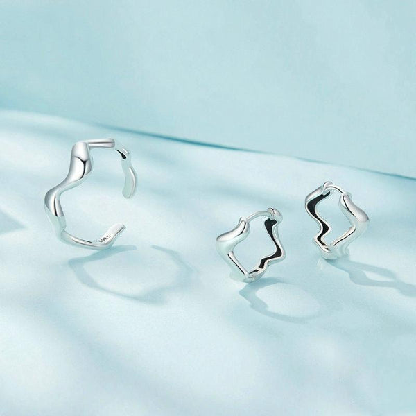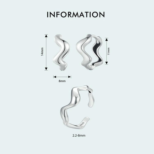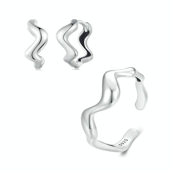 Sterling Silver Simple Wavy Earrings Ring Set