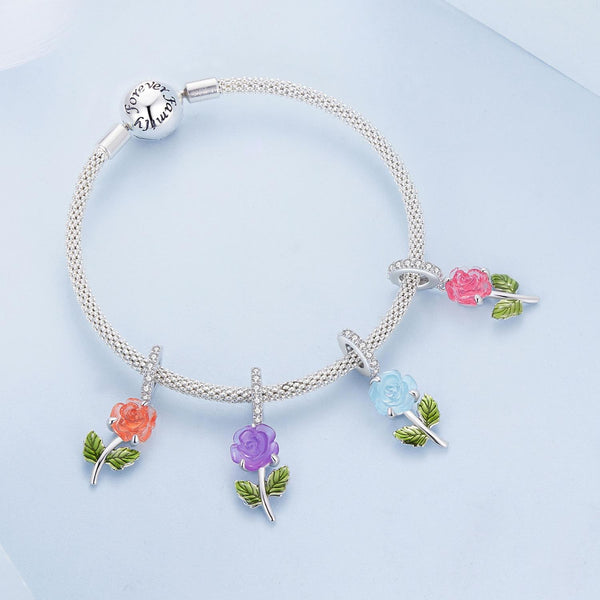 Sterling Silver Zircon Rose UV Color Changing Bead Accessory(Variable Blue)