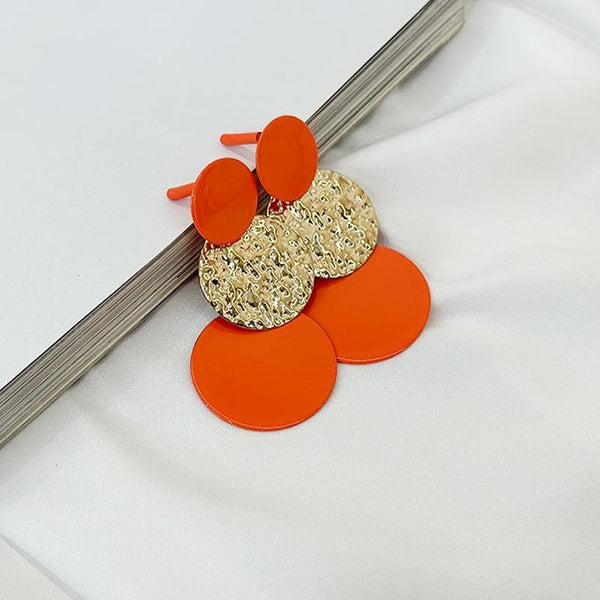 Stitching Solid Color Geometric Round Ladies Personality Earrings(E-649-Orange)
