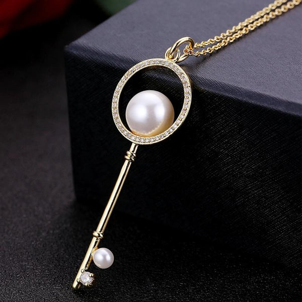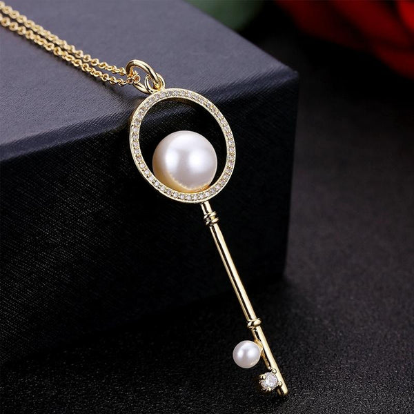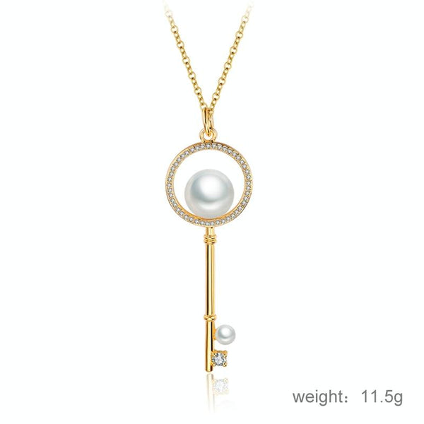Summer Trend Diamond Shape Bead Key Necklace for Female(Gold)