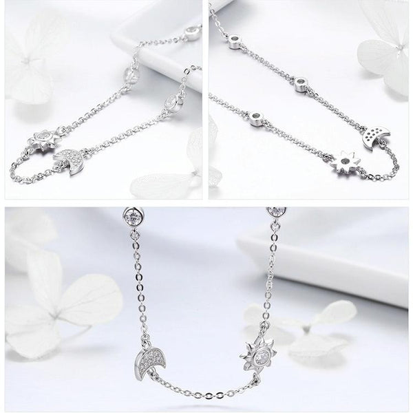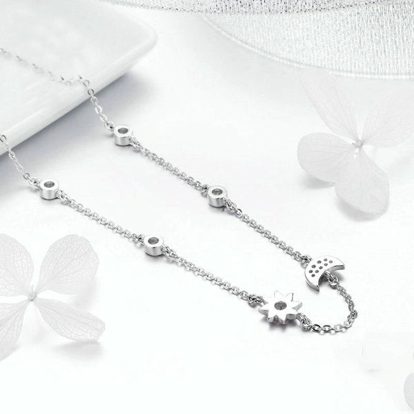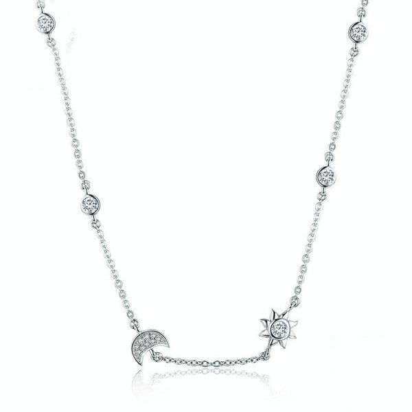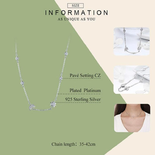 Sun Moon Shining S925 Sterling Silver Necklace Rose Gold Plated Zircon Necklace