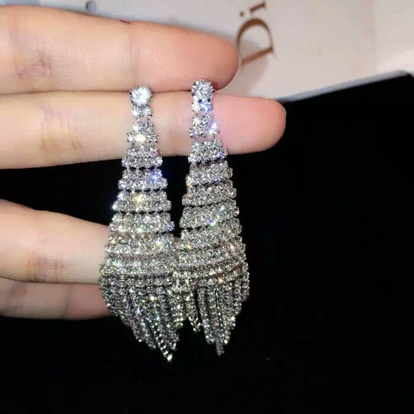Super Flash Diamond Two-color Tassel Earrings for Women(Silver clip earings)