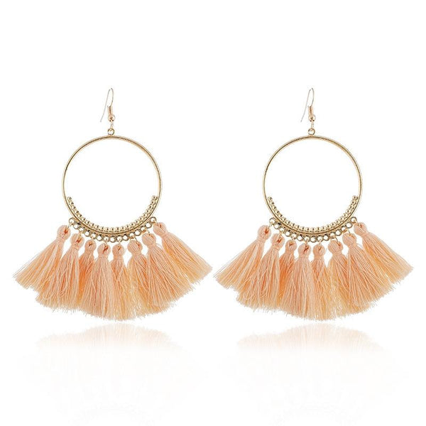 Tassel Earrings for Women Ethnic Big Drop Earrings Bohemia Fashion Jewelry Trendy Cotton Rope Fringe Long Dangle Earrings(Light Pink)