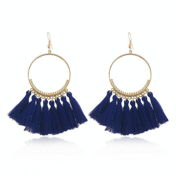 Tassel Earrings for Women Ethnic Big Drop Earrings Bohemia Fashion Jewelry Trendy Cotton Rope Fringe Long Dangle Earrings(Royal blue)