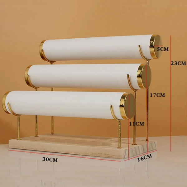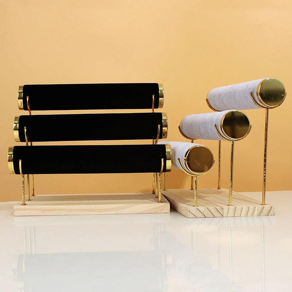 Three Layer Wooden Bottom Metal Stand Jewelry Display Stand Bracelet Watch Bangle Show Rack, Color: Black Velvet