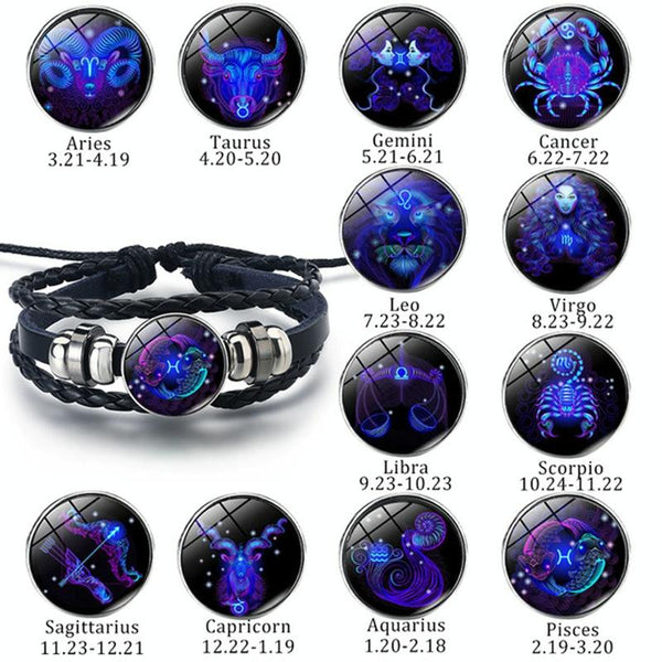 Twelve Constellation Luminous Bracelet Retro Leather Rope Woven Bracelet, Style: Capricorn