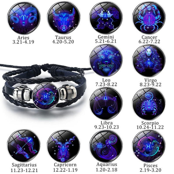 Twelve Constellation Luminous Bracelet Retro Leather Rope Woven Bracelet, Style: Leo