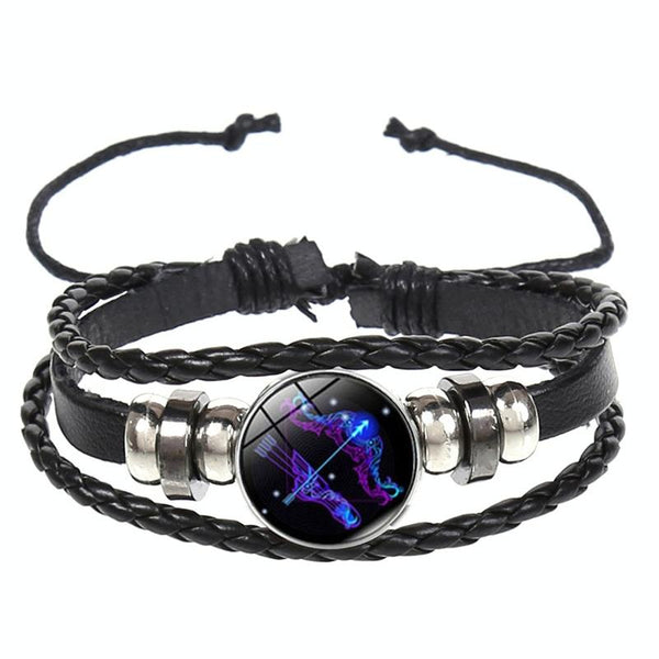 Twelve Constellation Luminous Bracelet Retro Leather Rope Woven Bracelet, Style: Sagittarius