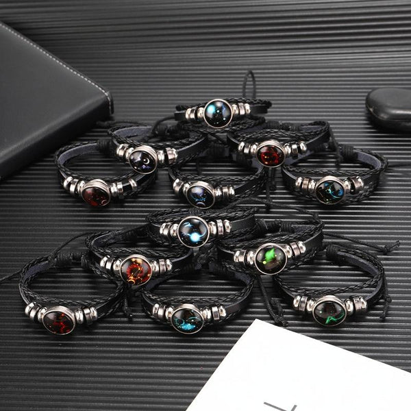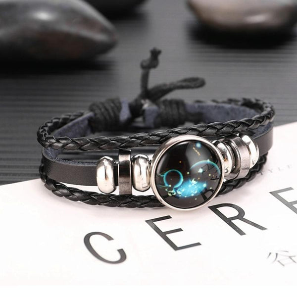 Twelve Constellations Multilayer Beaded Cowhide Bracelet, Style: Aquarius Luminous